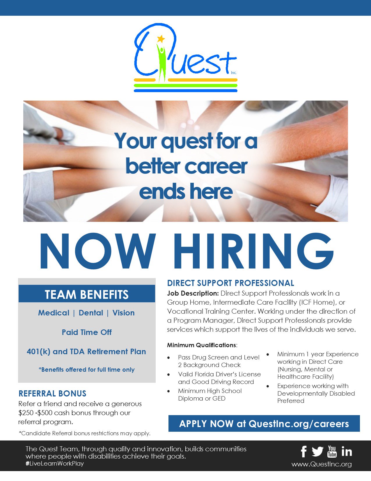 Quest Inc On Twitter We Want You To Join The Quest Team Now Hiring Direct Support Professionals Check Out The Flyer And Apply Https T Co W45kg0vvj2 Jobs Https T Co Cxcjyyrswx Twitter